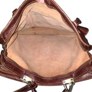 Some minor surface marks on the leather, a small stain in one of the pockets (which may come off I didn’t try), & loose threads @ one side near the zipper which does not affect use & could easily be repaired