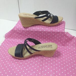 Tuscany By Easy Street Womens Allegro Black Wedge Sandals Size 7.5M