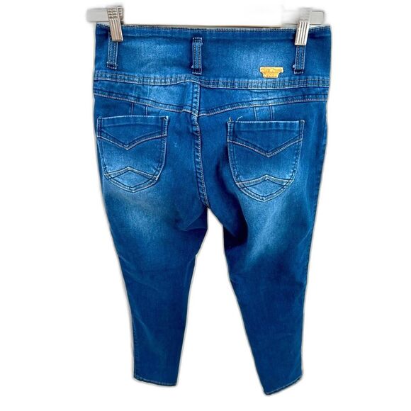 Tush Push columbian stretch skinny blue medium wash jeans size 7 28x35 Sexy