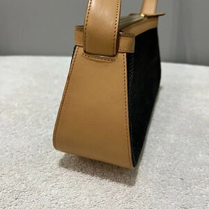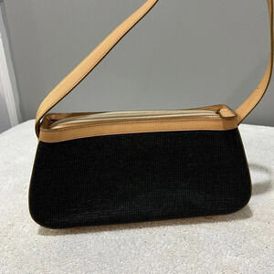 Tusk NY Women Brown Black Shoulder Handbag Zip Pockets Structured Woven Designer