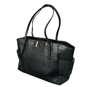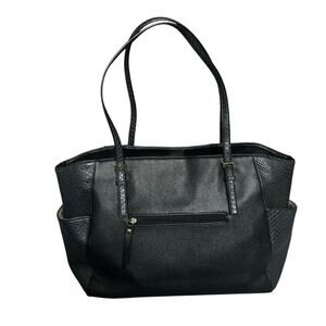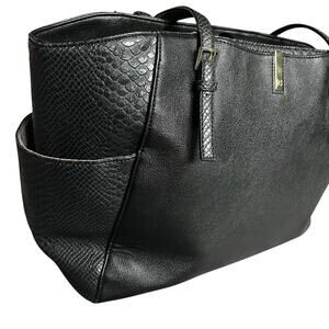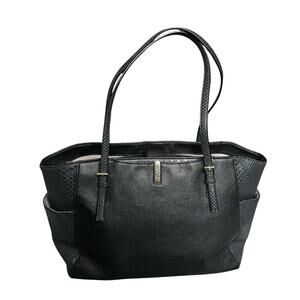 Tutilo New York Black Faux Leather Tote Shoulder Laptop Bag Double Handle