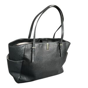 Tutilo New York Black Faux Leather Tote Shoulder Bag Laptop Bag Double Straps