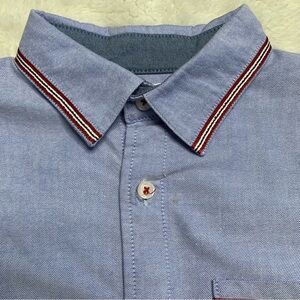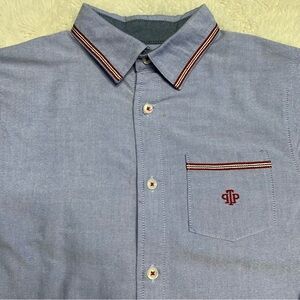 Tutto Piccolo Boy's Light Blue Red Button Down Shirt With Patches Size 12