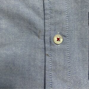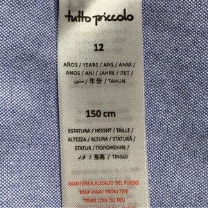 Pre owned authentic Tutto Piccolo Boy's Light Blue Red Long Sleeve Button Down Shirt With Patches Size 12. Has some marks. Please look at pictures for better reference. Happy Shopping! NDEC23. T31