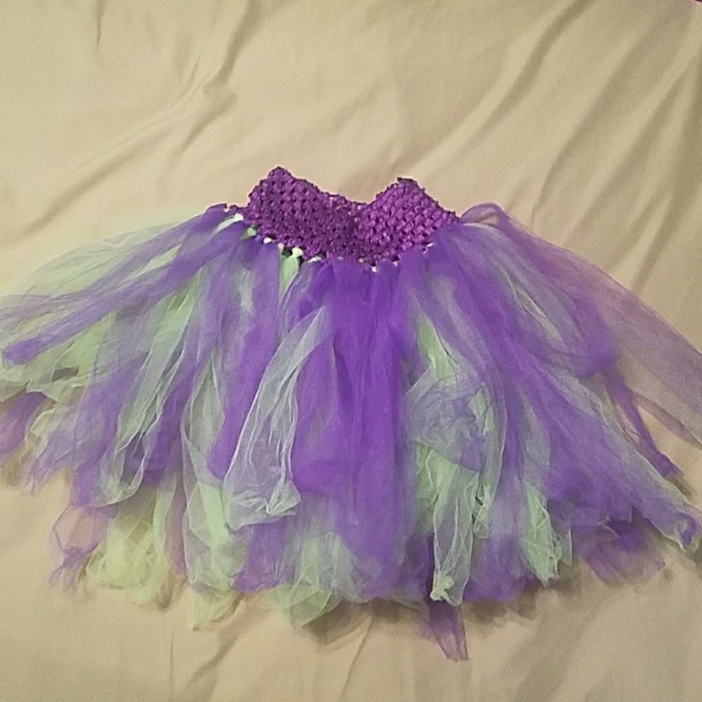 Purple and green fluffy handmade tutu.