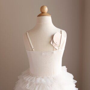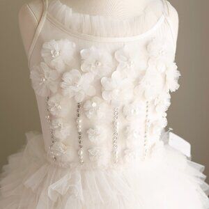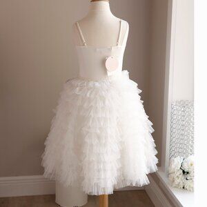 This Dress by Tutu Du Monde is Heavenly! The dress in done in a "Milk" White (an Off-White hue). The top is has adjustable straps and hand-applied pearls and silver sequins on the bodice, along with tulle flowers which have pearl centers. Layers of fine tulle cascade down the skirt creating a beautiful silhouette! Perfect for Flower Girls, Daddy/Daughter Dances, Recitals or other Special Occasion. GORGEOUS!! New With Tags!