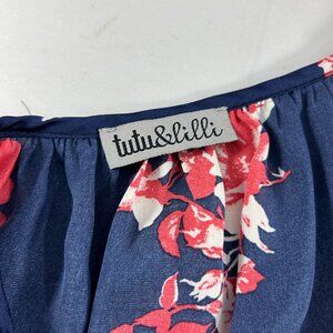 Tutu & Lilli Womens Blouse Size XS Blue Red Floral Pullover Short Sleeve Top Shirt in good preowned condition. Polyester machine wash.