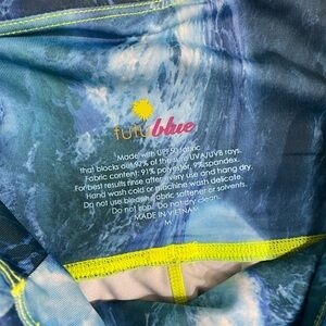 Tutublue2 Swim leggings Blue Waves pattern size M high waist