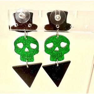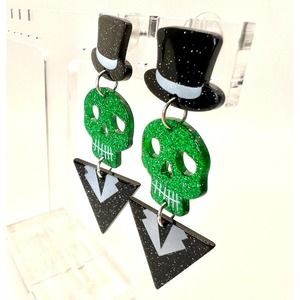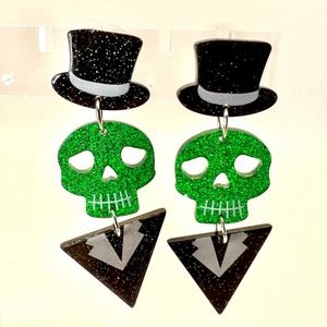 Tux Skeleton Earrings - Halloween Earrings - Skull Earrings - Glitter Earrings