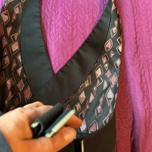 Tux vest , pink silver shimmer triangles size med- faux pockets – adjustable