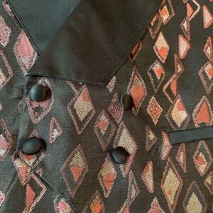 Tux vest , light pink silver shimmer triangles size medium faux pockets – adjustable
