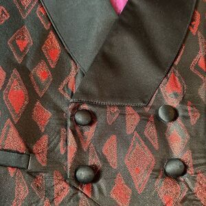 Tux vest , red shimmer-triangles size medium faux pockets – adjustable