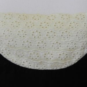 Beautiful and easy to wear dress by Viola (Anthropologie sold brand). Black cotton with cream eyelet bib. Size 8. Bust about 18", waist 15", length 39". Fits more true to size than some Viola dresses.