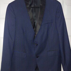 Tuxedo Jacket - Sz 42 - Navy checkered blue / black lapel - Bar 111 - Slim