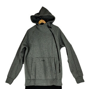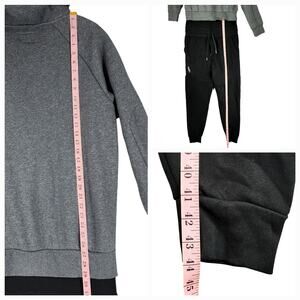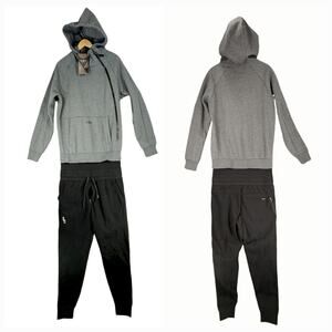 Tuxy One Piece Sweatsuit Jumpsuit L Men Gray Top Black Bottom Hooded Zip Fly NEW