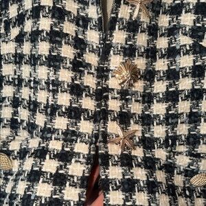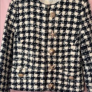 Tweed Blazer Jacket Gold Button Textured Structured Spring Chic