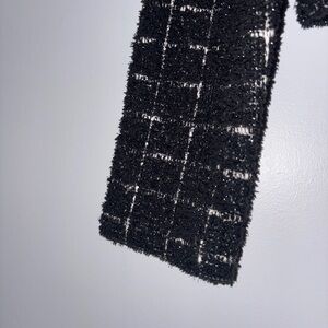 Tweed Chanel-style Black and White Cropped Blazer w Collar Plaid Pattern