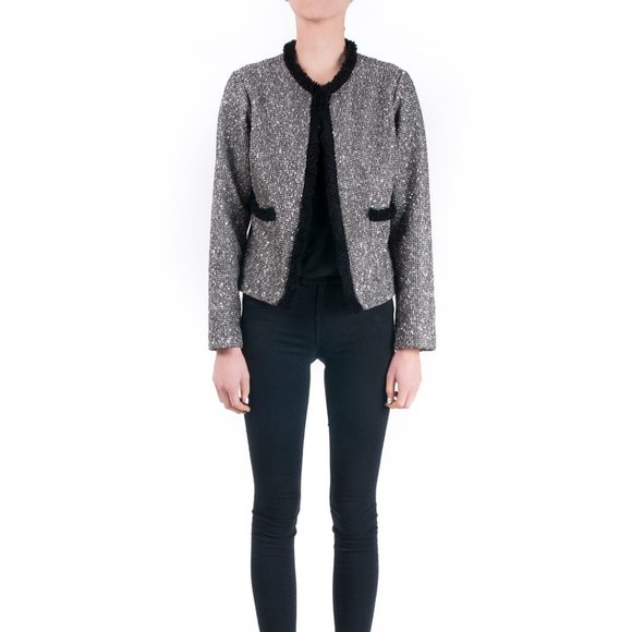 Grey, Silver, Black Metallic Tweed Jacket with Black Trim