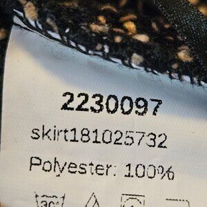 Classic tweed skirt offering a timeless design with a modern fringed hem. Suitable for professional or polished casual settings.