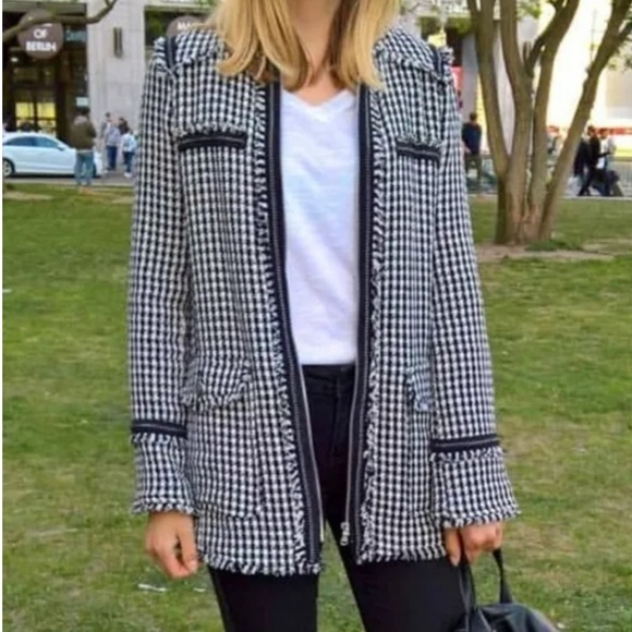 Zara Tweed Black and White Jacket Worn it twice Size Small