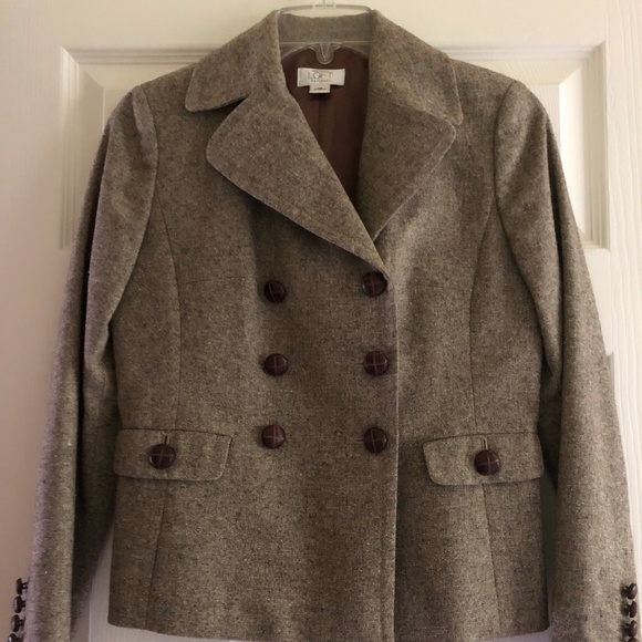 Great fall jacket! This is tailored very nicely, double breasted and lined. Love the buttons! Pair with a cute skirt, or even jeans!