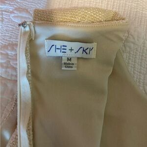 Tweed Mini Dress with ruffle hem. Structured fit with shoulder pads and a flattering cut. Great for a day out or office wear with a blazer. Very chic look! Color: Creme