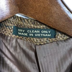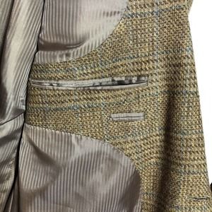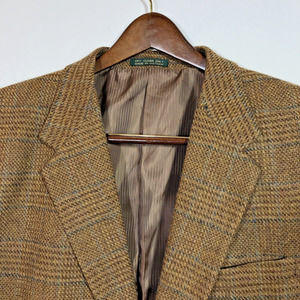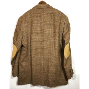 Tweed Plaid Blazer Brown and Blue 46 Two-Button Wool Academia Elbow Patches