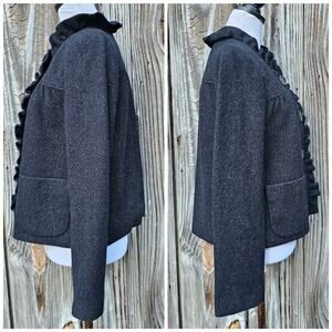 Tweed Ruffle Front Blazer Dark Charcoal Wool Jacket J. CREW Fiona Size 6 Pockets