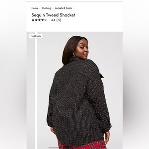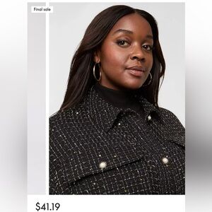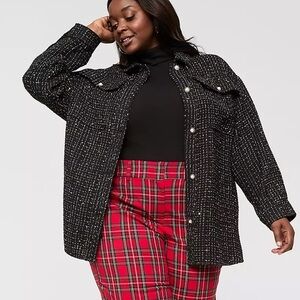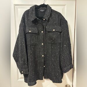 Lane Bryant tweed sequin shacket— very Chanel feeling! Dress up or wear with leggings. Can be worn open or buttoned up. Beautiful pearl buttons. Worn one time!