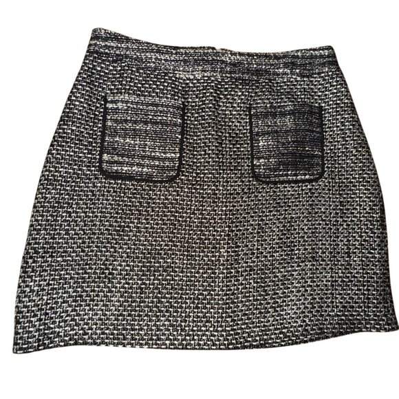 Tweed Skirt Size 8 Black White Wool Blend Classic Preppy Casual Office Mod Work