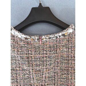 Tweed Sleeveless Dress With Sequin Embellished Collar & Keyhole - L - (1411)