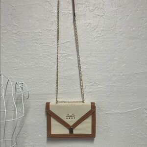 This great crossbody bag features a sophisticated cream and brown color scheme, perfect for adding a touch of class to any outfit. Its envelope-style design with a flap closure offers a sleek and modern look, while the combination of materials ensures durability and style. The bag's versatile design makes it an ideal accessory for both casual and formal occasions. The super cute bag is an excellent like new, ready to wear condition and comes from a smoke free home.