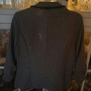 Cute little jacket with lacy piping along the collar. Scrunched sleeves. Fits more like a large than an xl in my opinion. Perfect for fall!