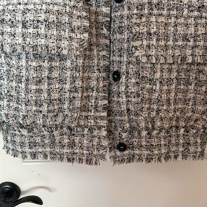 H&M tweed bomber style jacket. Never worn. Lined. Cream/tan/black tweed. Really cute to wear with jeans or dress up.