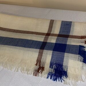 Tweedmill lambswool unisex scarf lambs wool cream blue brown plaid stripe light