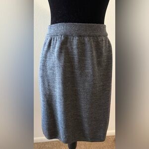 Tweeds 100% wool soft knit elastic waist gray mini to knee length skirt large EC