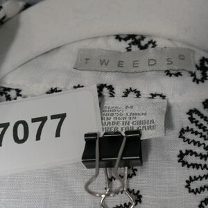 Tweeds Blouse Womens M Black White Embroidered Swirls 100% Linen Button Front