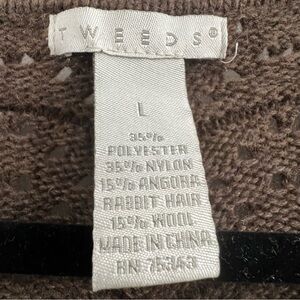 Tweeds Cardigan Brown Angora Rabbit Hair Wool Blend 3/4 sleeve, size L