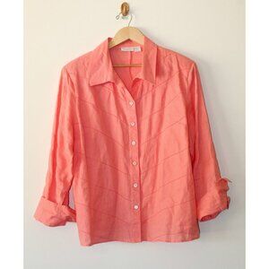 Tweeds Linen Orange Women's Shirt Button Down Size 2X Long Sleeves Lagenlook