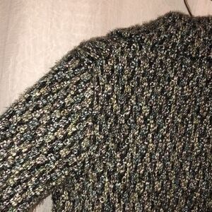 Tweeds M Wool Blend Olive Green Teal Gray White Boucle Chunky Knit Cardigan