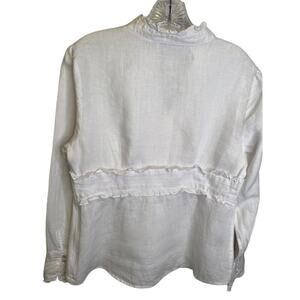 Tweeds White Ruffle detail linen tunic style Pull over blouse size Medium