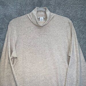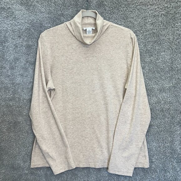 Womens Beige Cotton Long Sleeve Turtleneck XL Neutral Minimalist Timeless Chic