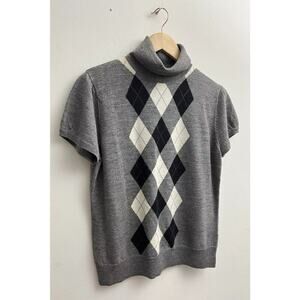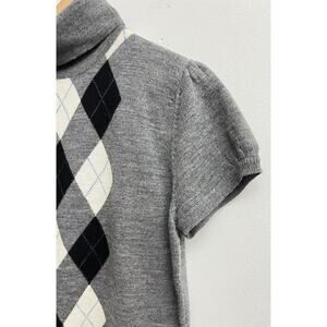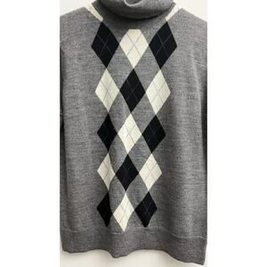 Tweeds Women’s Sz L Gray Blk Argyle 100% Merino Wool Turtleneck Sweater Academia