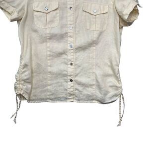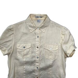 Tweeds Women's Size Small Yellow Linen Short Sleeve Button Up Shirt