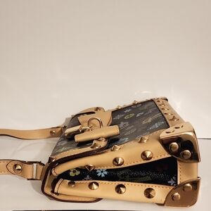 Tweedy Bow Monogram Signature Satchel Purse Bow Snap Closure Black Multicolor