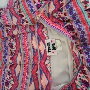 Tween Diva Girl Skirt Beautiful colorful skirt and flowers, with zipper on the side to close. The back is longer. Pre-owned very good condition