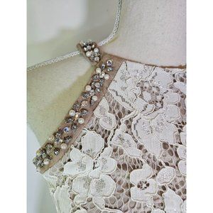Tween Diva Girls Cocktail Party Dress, Size 16, Lace, Halter Top, Rhinestones and Pearl Embellishments, Zip Closure.