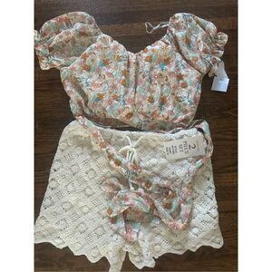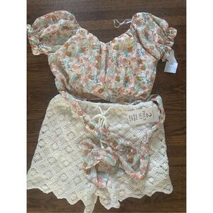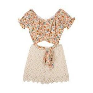 Tween Diva Girls size 12 Floral Puff Sleeve Top and lace shorts set