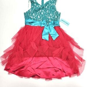 Tween Diva Sleeveless Teal Lace & Hot Pink Waterfall Ruffle Party Dress Girl 16
