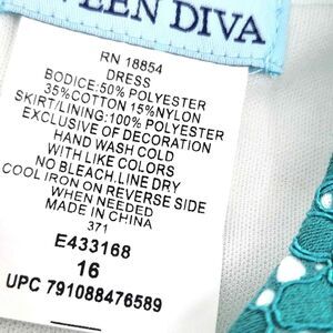 Tween Diva Sleeveless Lace & Waterfall Ruffle Party Dress - New with tags - Size Girls 16 - Color Teal, Hot Pink & White Flat Lay Measurements: - Approx. 14.75" arm pit to arm pit - Approx. 13.5" waist - Approx. 32" length - Satin bow detail - Zipper back closure - Lined - Formal, Dance, Satin, Festive - Inv# V-012023-IROD